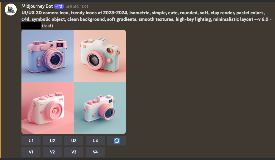 --s 150/300/400/500 등 스타일 값을 변환하거나, variation을 사용하여 원하는 이미지가 나올 때까지 반복한다.