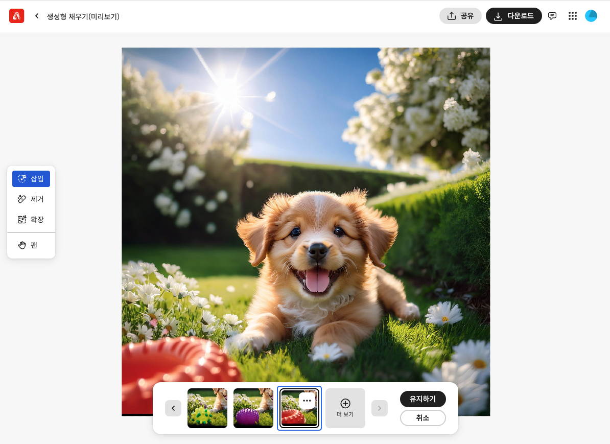 - 3개의 이미지 중 원하는 요소를 클릭하고 유지하기를 클릭하여 저장한다.