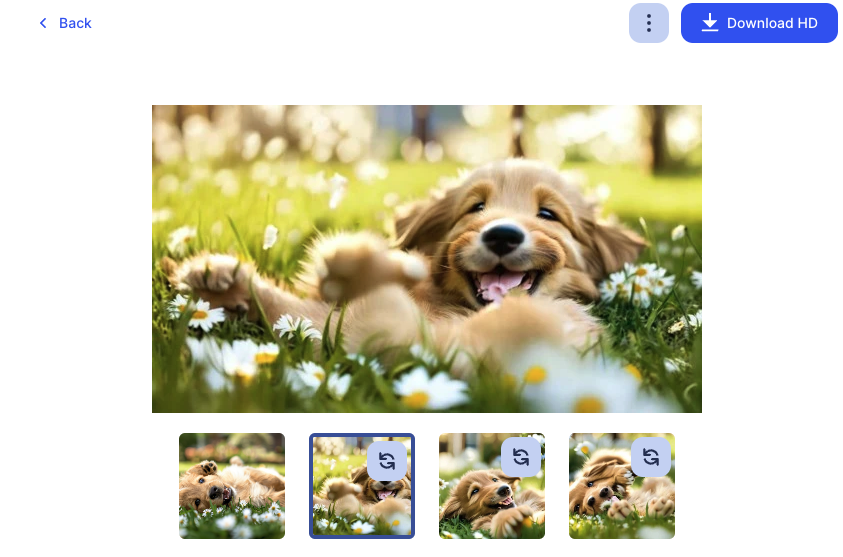 - 이미지가 마음에 들지 않으면, more을 클릭하여 더 많은 이미지를 생산한다.