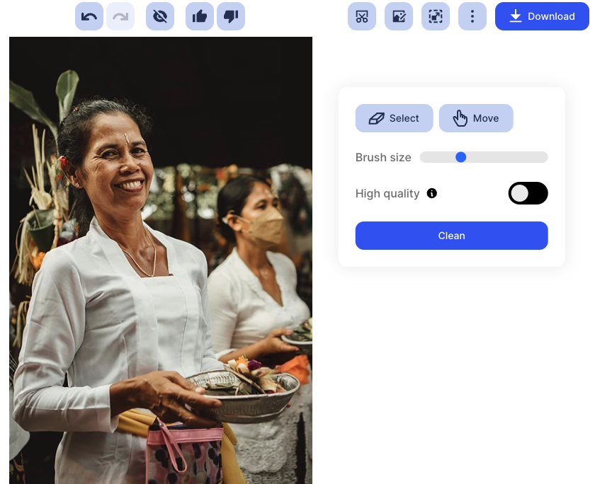 특정 개체를 지울 수 있다. High quality 기능은 현재 유료 사용자만 가능하다.